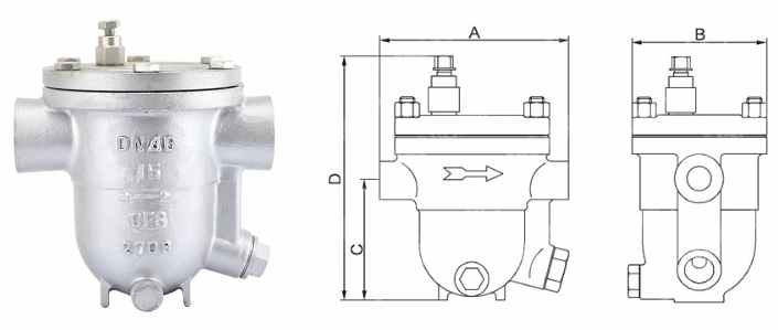 不銹鋼內(nèi)螺紋蒸汽疏水閥外形結(jié)構(gòu)圖: