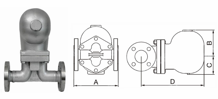 不銹鋼杠桿浮球式蒸汽疏水閥外形結(jié)構(gòu)圖: