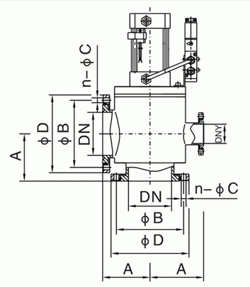 GDQ-J-A常閉型氣動高真空擋板閥外形結構圖: