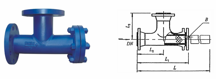 正折流式T型過濾器外形結(jié)構(gòu)圖: