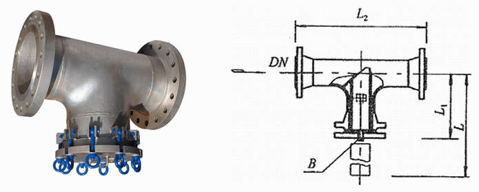 快開式T型過濾器外形結(jié)構(gòu)圖: