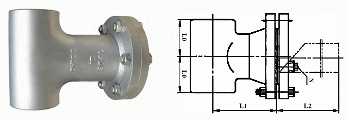 焊接直流式T型過(guò)濾器外形結(jié)構(gòu)圖: