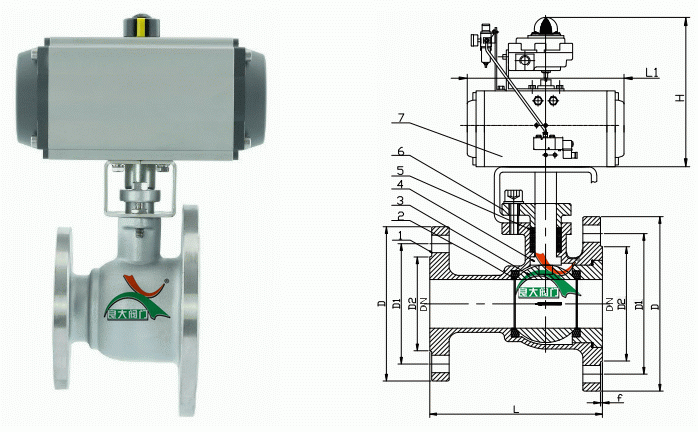 氣動(dòng)異徑球閥外形結(jié)構(gòu)圖: