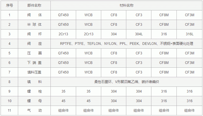 氣動(dòng)陶瓷偏心半球閥零件材料: