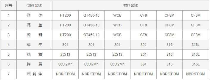 倒流防止器零件材料: