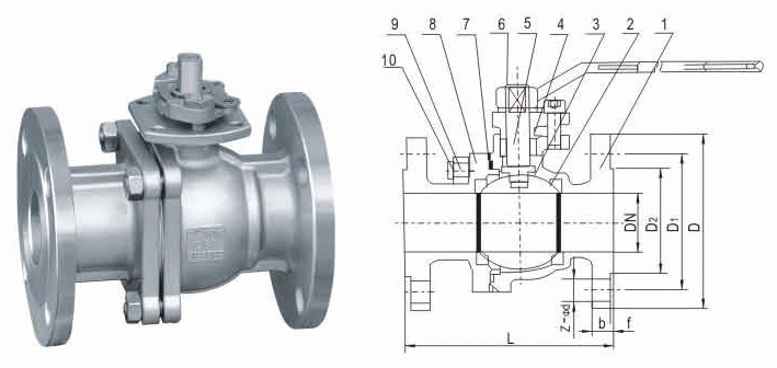 高平臺(tái)德標(biāo)球閥外形結(jié)構(gòu)圖: