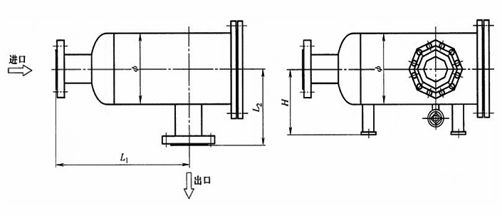 臥式籃式過濾器外形結(jié)構(gòu)圖: