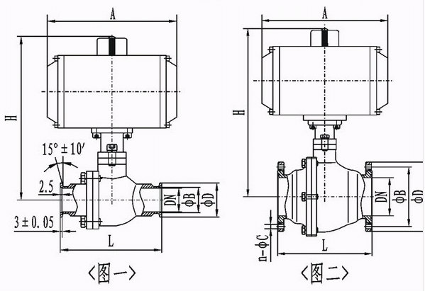 GUQ型氣動(dòng)高真空球閥連接尺寸: