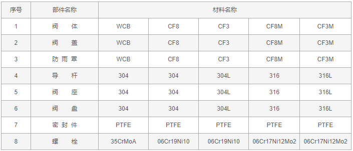 全天候防凍呼吸閥零件材料: