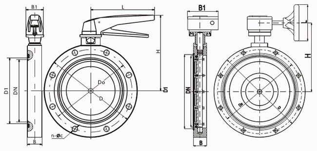 GI型高真空蝶閥外形結(jié)構(gòu)圖: