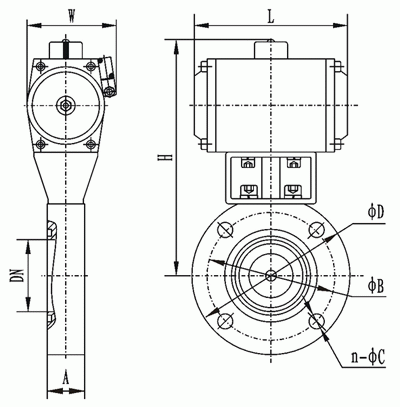 GIQ-B型氣動高真空蝶閥外形結(jié)構(gòu)圖: