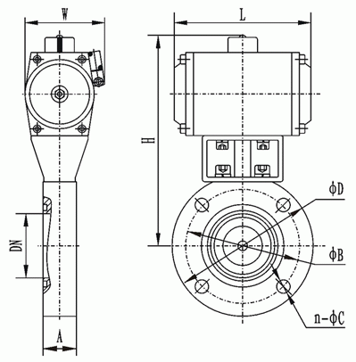 GIQ-AB型氣動(dòng)高真空蝶閥外形結(jié)構(gòu)圖:
