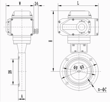 GID型電動高真空蝶閥外形結(jié)構(gòu)圖: