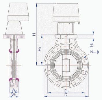 D971X-10S電動(dòng)塑料蝶閥外形結(jié)構(gòu)圖: