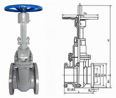碳鋼美標(biāo)閘閥外形結(jié)構(gòu)圖: