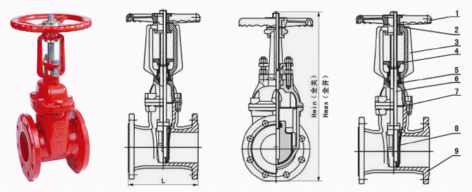 消防法蘭閘閥外形結(jié)構(gòu)圖: