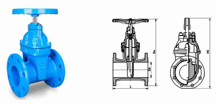 污水法蘭閘閥外形結(jié)構(gòu)圖:
