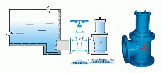 氣動(dòng)角式快開排泥閥主要用于自來水公司各類水池,排除池底泥沙或污物。也可安裝在工作介質(zhì)為水、氣、池等工業(yè)管道中作截流用,此閥主要安裝在個(gè)類沉淀池的底部壁外,用以排除池底的泥沙污物。氣動(dòng)角式快開排泥閥工作原理及其性能: