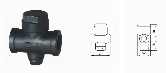 熱動力圓盤式蒸汽疏水閥外形結(jié)構(gòu)圖: