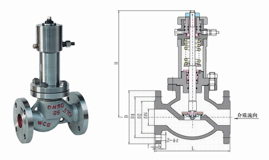 液化氣液動緊急切斷閥外形結(jié)構(gòu)圖: