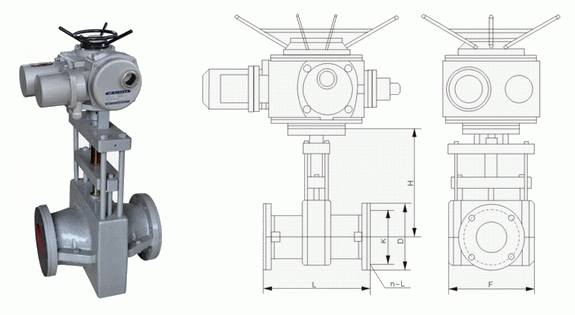 當(dāng)電動(dòng)頭順時(shí)針轉(zhuǎn)手輪時(shí),使大小閥桿同時(shí)帶動(dòng)上下壓板以壓縮管套從而進(jìn)行關(guān)閉,反之即行開啟。這樣,壓板在拉桿之間上下往復(fù)運(yùn)動(dòng)來完成閥門開閉工作。