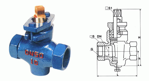 二通內螺紋銅芯旋塞閥外形結構圖: