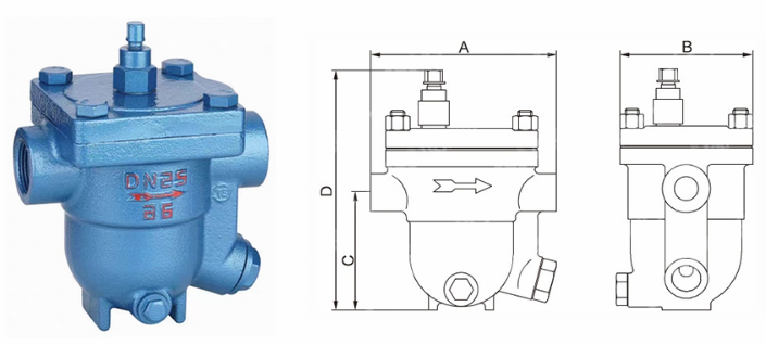 絲扣蒸汽疏水閥外形結(jié)構(gòu)圖: