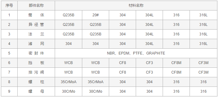 全自動反沖洗排污過濾器零件材料表: