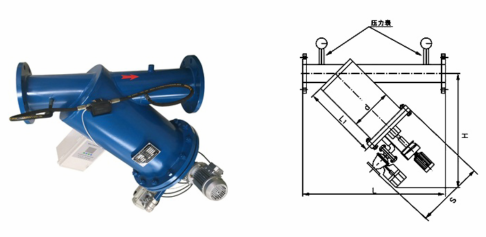 Y型電動(dòng)刷式過濾器外形結(jié)構(gòu)圖:
