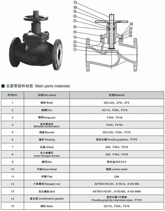 暗桿式德標波紋管截止閥結(jié)構(gòu)特點: