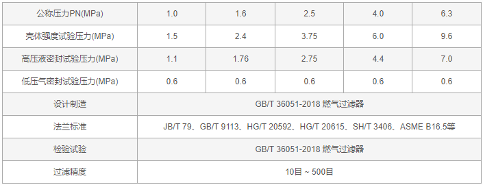 天然氣Y型過(guò)濾器技術(shù)規(guī)范表: