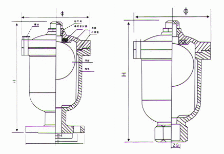 法蘭式單口排氣閥主要由閥體、閥門、上蓋、閥桿、浮球、排氣嘴等組成。當(dāng)需要排出管道內(nèi)的氣體時(shí),管道內(nèi)的空氣在水的壓強(qiáng)作用下進(jìn)入體腔內(nèi),并從排氣嘴排出,隨之管道內(nèi)的水充滿體腔內(nèi),使浮球在水的浮力作用下,向上移動(dòng)將排氣嘴堵塞,達(dá)到自行密封,管道在正常行中,水中的空氣在壓強(qiáng)的作用下,不斷排入排氣閥的體腔上部,迫使浮球下降,離開原來密封位置,這時(shí)空氣又從排氣嘴排出,隨之,浮球又恢復(fù)到原來位置自密封,因此,排氣閥在正常工作中閥門始終是開著的,浮球不斷重復(fù)上述動(dòng)作,空氣不斷排出。當(dāng)需要檢修或清掃體腔時(shí),應(yīng)將閥門關(guān)閉。單口排氣閥,順時(shí)針旋轉(zhuǎn)閥桿時(shí)為關(guān)閉。