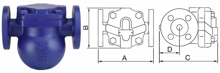 FT44H杠桿浮球式蒸汽疏水閥外形結(jié)構(gòu)圖: