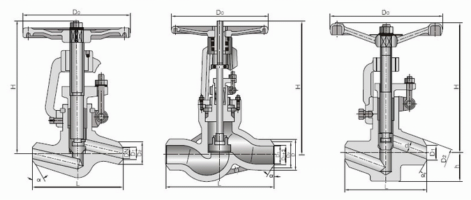 高壓焊接截止閥外形結(jié)構(gòu)圖: