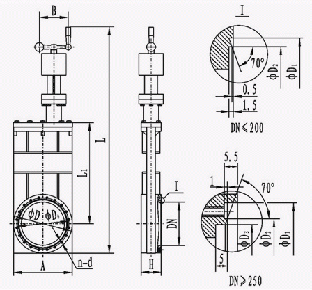 CC型超高真空插板閥外形結(jié)構(gòu)圖: