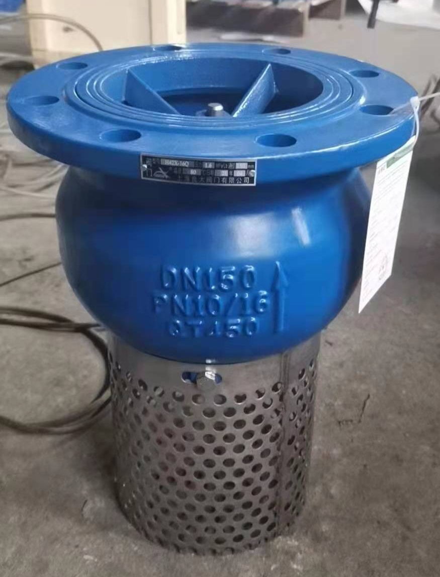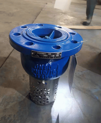 濾網(wǎng)式底閥是一種節(jié)約能源的閥,一般安裝在水泵水下吸管的底端限制水泵管內(nèi)液體返回水源,起著只進(jìn)不出的功能。底閥由閥體,閥瓣,閥蓋,襯套,密封圈等零件組成,詳見(jiàn)下圖水源的水從閥蓋進(jìn)入閥體。在流體的壓力作用下,閥瓣打開(kāi)水,當(dāng)示停后出口管內(nèi)的壓力將閥瓣迅速關(guān)閉,液體將不會(huì)倒回水源,起到了即暢通抽水又節(jié)約水能損失的作用。濾網(wǎng)式底閥產(chǎn)品實(shí)物圖: