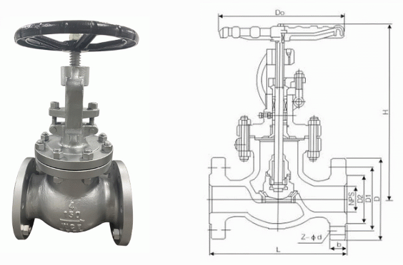 美標(biāo)法蘭截止閥外形結(jié)構(gòu)圖: