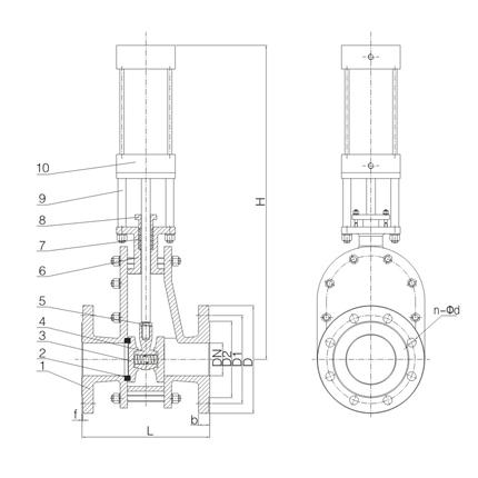 陶瓷平行雙閘板閘閥外形結(jié)構(gòu)圖: