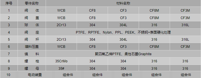 不銹鋼電動(dòng)球閥零件材料: