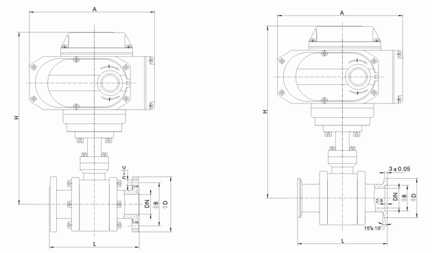電動高真空(壓力)球閥外形結(jié)構(gòu)圖: