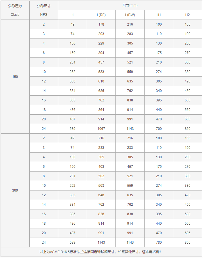 天然氣管道球閥外形尺寸表: