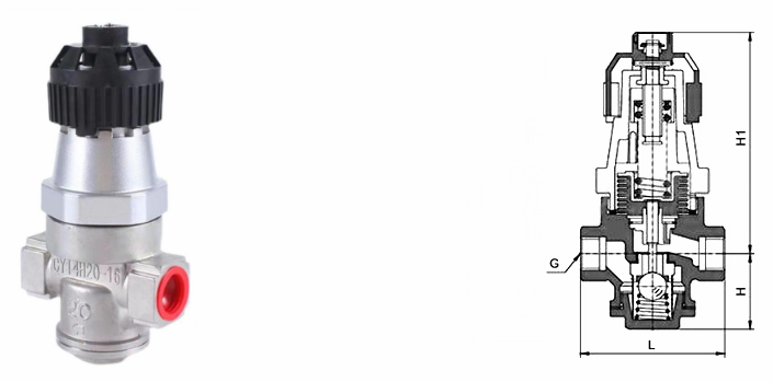 內(nèi)螺紋波紋管式減壓閥外形結(jié)構(gòu)圖: