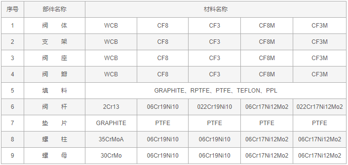 反應(yīng)釜電動放料閥零件材料:
