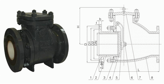 H44TC旋啟式陶瓷止回閥又稱陶瓷單向閥或陶瓷逆止閥,其作用是防止管路中的介質倒流,一般適用于含有固體顆粒的磨損性和沖刷性比較強的介質。旋啟式陶瓷止回閥的閥瓣和閥座及流體通道均內襯高性能增韌結構陶瓷材料,具有極好的耐磨損和耐沖刷性能。在管道中可任意角度安裝。旋啟式陶瓷止回閥標準規(guī)范:
