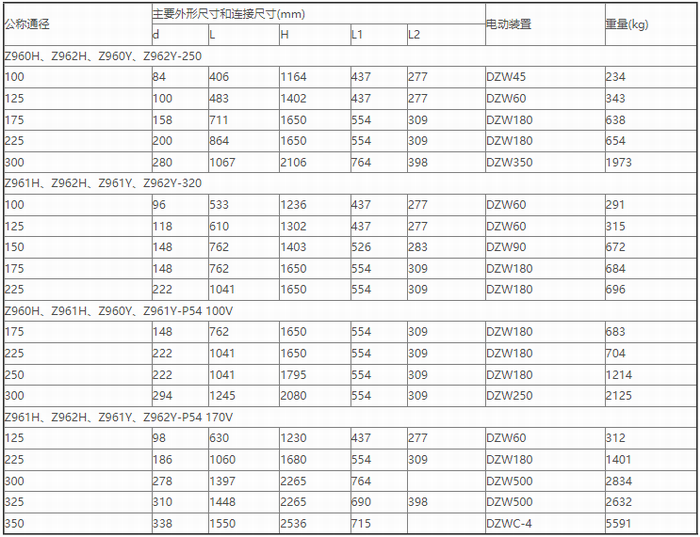 高溫高壓電動閘閥外形尺寸表: