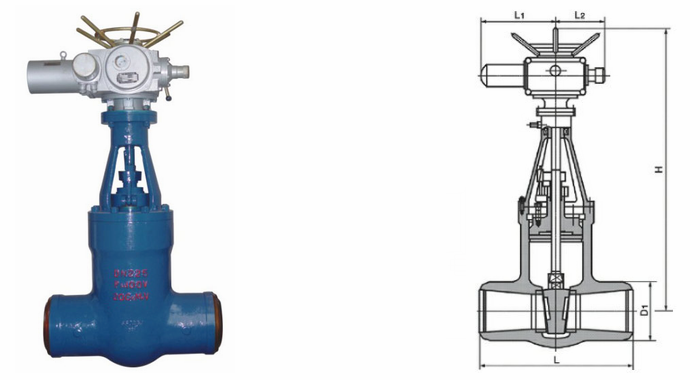 高溫高壓電動閘閥外形結(jié)構(gòu)圖:
