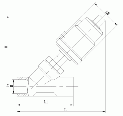 全不銹鋼焊接式氣動角座閥外形結構圖: