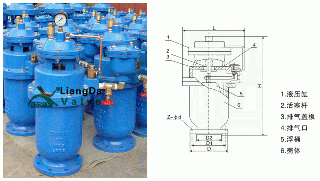 QSP全壓高速排氣閥是根據(jù)氣缸原理制成的不同于其他任何一種進排氣閥的全新裝置,其原理是用浮筒杠桿等控制氣缸內(nèi)氣動膜片動作,從而控制閥體排氣口啟閉。在高壓(1MPa以下)狀態(tài)下,無論是多段水柱、氣柱相間,有壓無壓氣體均可高速排出。