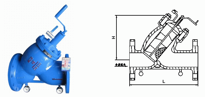 手搖刷式Y(jié)型過(guò)濾器外形結(jié)構(gòu)圖: