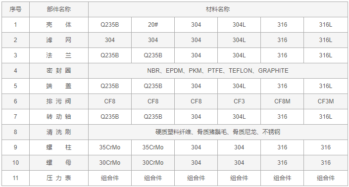 尊敬的客戶!我公司手搖刷式過濾器公稱通徑、工作壓力、法蘭標(biāo)準(zhǔn)、過濾精度及濾網(wǎng)材質(zhì)等可根據(jù)客戶需求定制,本產(chǎn)品清洗刷材料可選用不銹鋼、豬鬃毛、骨質(zhì)尼龍等,過濾芯件可采用沖孔板濾筒內(nèi)置編制絲網(wǎng)或不銹鋼楔形濾網(wǎng),具體詳情請咨詢我司銷售技術(shù)人員。